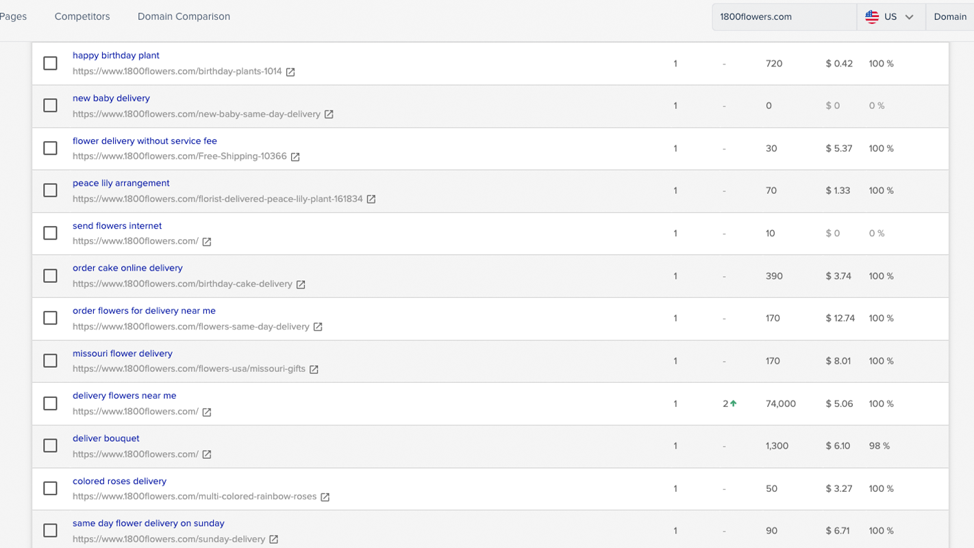 • Võrrelge kahe või enama domeeni märksõnade järjestust